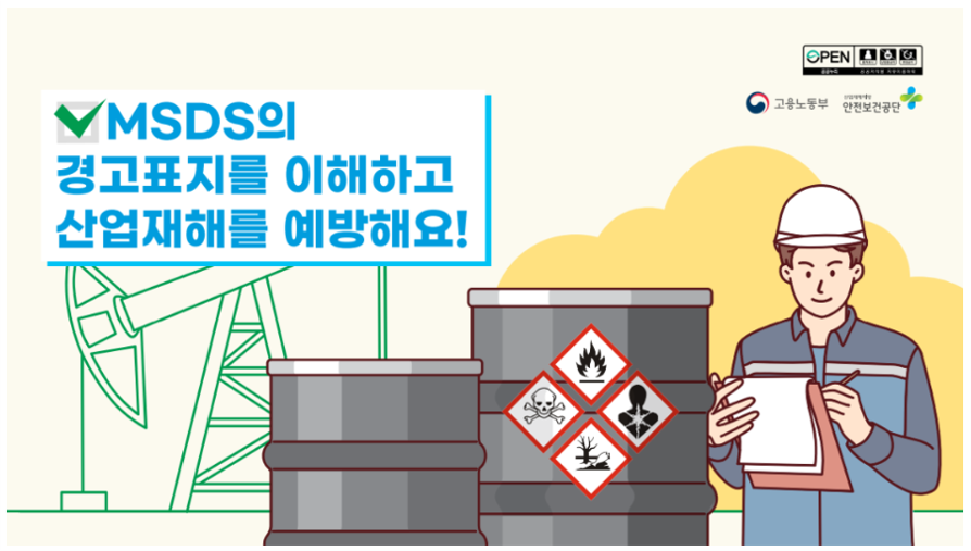 MSDS 경고 표지 교육 자료 작성자관리자 등록일 25-07-07 조회204회 본문 MSDS 경고 표지 교육 자료1. MSDS의 경교표지 교육 개요2. MSDS 이해3. 경고 표지 이해4. 경고표지의 내용과 확인방법 첨부파일 [2024-산업안전보건연구원-661]_MSDS 및 경고표지 교육자료_국문.pdf (4.0M) 교량 설치 해체 작업 관련 안전사고 예방 자료 안전문화 현수막 4종 목록