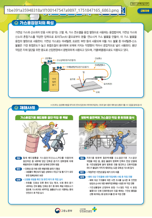 - 보안면, 보안경, 안전화 등 보호구와 용접작업에 적합한 작업복 착용