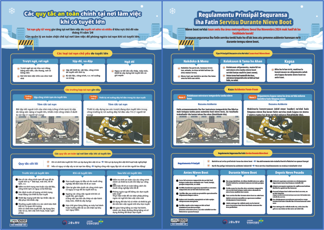 외국인 근로자를 위한 대설 시 사업장 주요 안전수칙 (17개국)