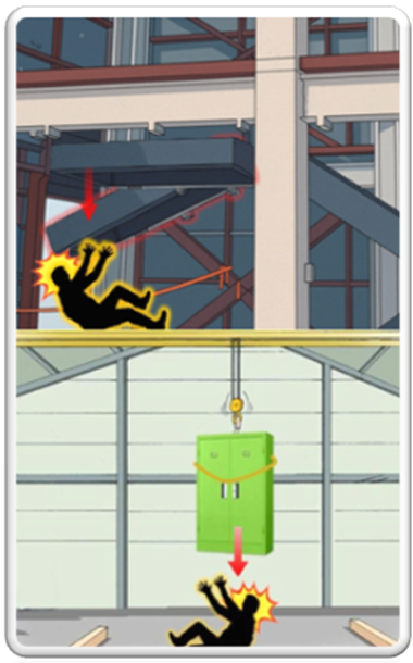 - 중량물 인양 시 중량물의 무게와 형태에 맞는 결속방법과 지지점을 선정하여 중량물이 떨어지지 않도록 할 것