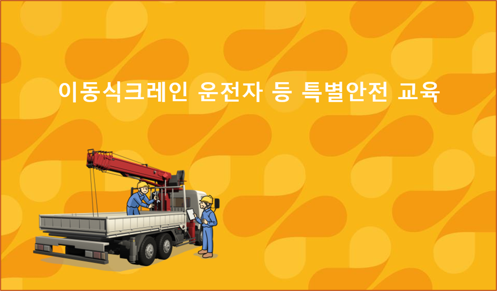 이동식 크레인 운전자 등 특별안전 교육 교안 작성자관리자 등록일 25-12-22 조회5회 본문 이동식 크레인 운전자 등 특별안전 교육 교안 첨부파일 이동식크레인 운전자 등_특별안전 교육 교안.pptx (45.3M) 외국인 근로자용 이동식 크레인 안전교육 (16개국) 이동식 크레인 작업 사고 예방대책 목록