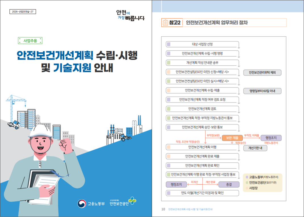 안전보건개선계획 수입·시행 및 기술지원 안내 (사업주용) 작성자관리자 등록일 26-03-23 조회42회 본문 안전보건개선계획 수입·시행 및 기술지원 안내 (사업주용) 첨부파일 2026 안전보건개선계획 수립시행 기술지원 안내.pdf (5.3M) 사업장 보건관리 업무 매뉴얼 태양광 설비 지붕작업 관련 교안 목록