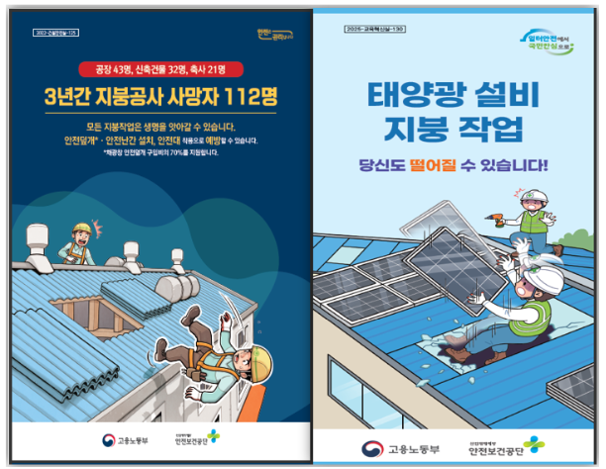 - 지붕 위 작업시 채광창에는 견고한 구조의 덮개를 설치하고 작업