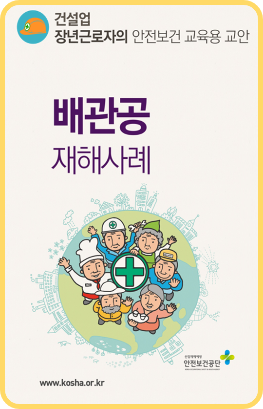 장년근로자의 안전보건 교육용 교안 (배관공 재해사례) 작성자관리자 등록일 25-11-24 조회90회 본문 장년근로자의 안전보건 교육용 교안 (배관공 재해사례)1. 배관 설치 작업2. 배관 용접 작업3. 관로 부설 작업4. 배관 보온 작업5. 재해 사례 첨부파일 장년근로자-08-건설업-배관공 재해사례.ppt (23.6M) 외국인 근로자용 굴착기 작업안전 (16개국) 굴착 및 관로 매설 공사 중 토사 붕괴 의한 사고 예방대책 목록