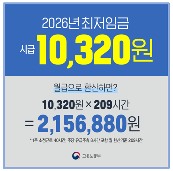 2026년 적용 최저임금 시간급 10,320원