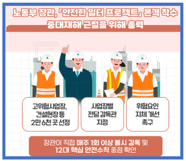 노동부장관, 「안전한 일터 프로젝트」 본격 착수, 중대재해 근절을 위해 총력