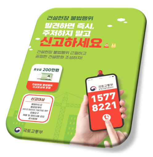 - 국토교통부는 5개 지방국토관리청(서울·원주·대전·익산·부산)에 ‘공정건설 지원센터’를 설치하여 건설현장 불법행위 신고를 접수받음.