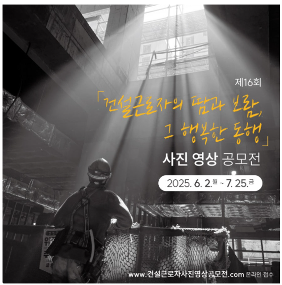 건설근로자공제회(이사장 김상인, 이하 '공제회')는 제16회 「건설근로자 사진区영상 공모전」을 개최한다고 밝혔습니다.