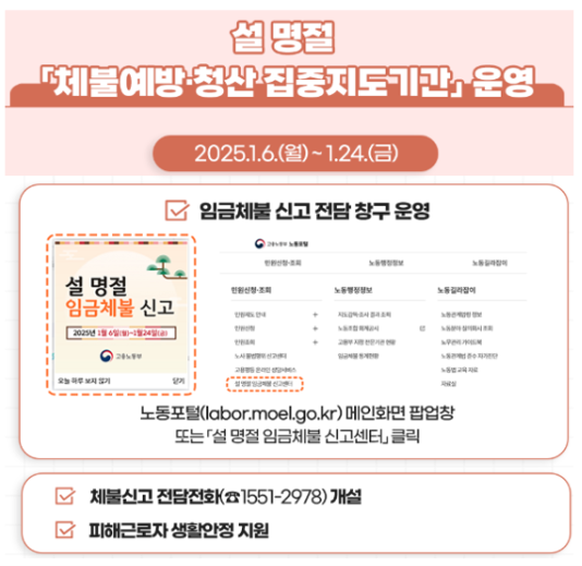 설 명절 체불예방 및 청산 집중지도기간 운영
