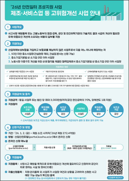 [2026 안전일터 조성지원 사업] 제조·서비스업 등 고위험개선 사업 안내