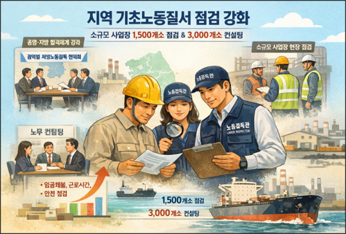 고용노동부(장관 김영훈)는 4.20.(월) 「’26년 지역 기초노동질서 점검 운영계획」을 발표하고, 전국 17개 시·도와 협력하여 소규모 사업장 1,500개소에 대한 예방감독과 3,000개소에 기초노동질서 준수 컨설팅을 실시하겠다고 밝혔다. 이는 올해 12월 「노동감독관 직무집행법」시행에 따라 지방정부에 대한 감독권한 위임이 추진되므로, 그 사전 단계로서 중앙-지방 간 협업체계를 구축하고 지방감독 수행 기반을 마련하기 위함이다.
