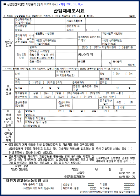산업재해조사표 작성자관리자 등록일 25-07-01 조회113회 본문 산업재해조사표 첨부파일 [별지 제30호서식] 산업재해조사표산업안전보건법 시행규칙.hwp (81.0K) 취업규칙 신고서 서식 타워크레인 설치 해체 상승 작업계획서 양식 목록