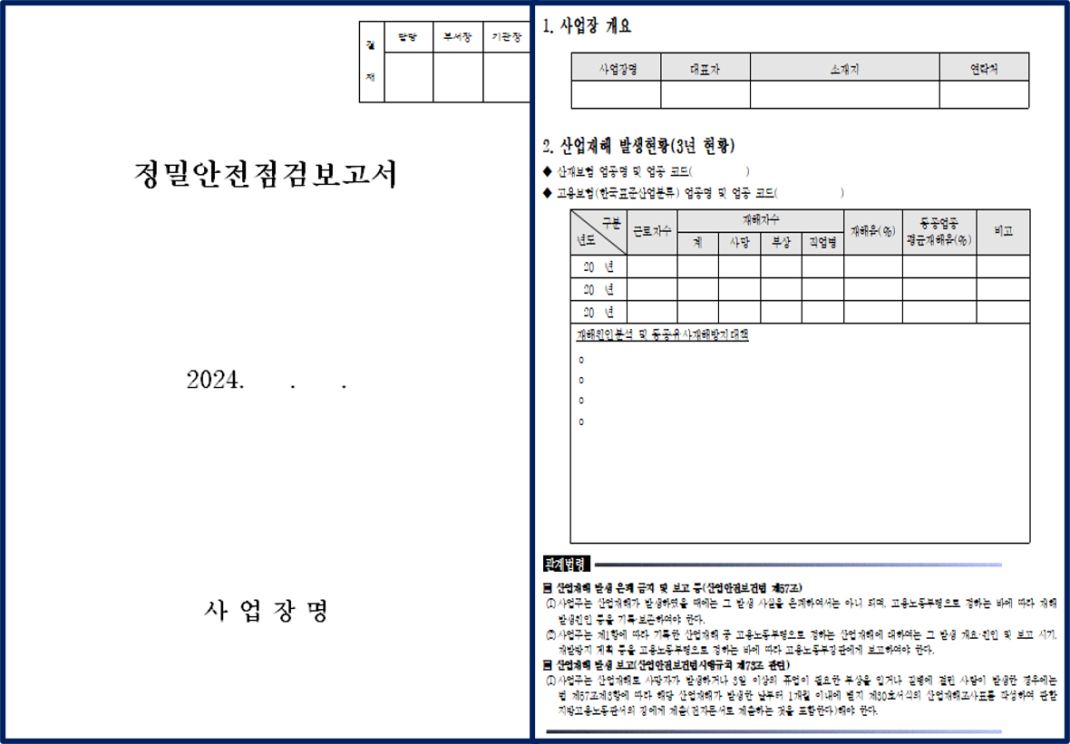 제조업 정밀안전점검보고서(게시용) 양식 작성자관리자 등록일 25-07-01 조회112회 본문 제조업 정밀안전점검보고서(게시용) 양식 첨부파일 정밀안전점검보고서게시용.hwp (99.0K) 산업안전 진정 신고서 양식 취업규칙 신고서 서식 목록