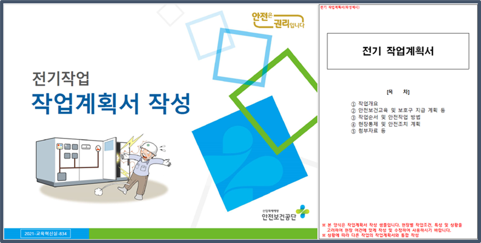 전기작업 작업계획서 작성 교안 및 작업계획서 샘플 작성자관리자 등록일 25-08-12 조회131회 본문 전기작업 작업계획서 작성 교안 및 작업계획서 샘플 첨부파일 [2021-교육혁신실-834] 전기 작업계획서 작성 교안.pptx (7.6M) [2021-교육혁신실-834] 전기 작업계획서 샘플예시.hwp (24.0K) 지붕 작업 시 사고 예방 자율점검표 고위험 건설기계장비 안전점검표(5종) 목록
