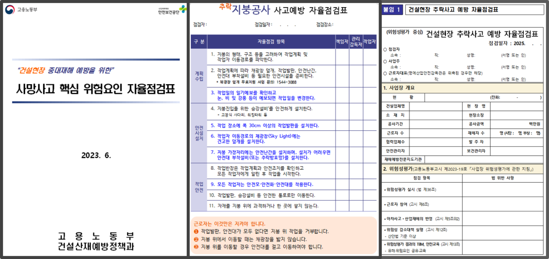 건설현장 사망사고 핵심 위험요인 자율점검표 및 추락사고 예방 자율점검표 작성자관리자 등록일 25-11-17 조회64회 본문 건설현장 사망사고 핵심 위험요인 자율점검표 및 추락사고 예방 자율점검표 첨부파일 ★ 건설현장 사망사고 핵심 위험요인 자율점검표.hwp (96.5M) 건설현장 추락사고 예방 자율점검표.hwpx (54.3K) 중대재해 발생 보고서 양식 지게차 작업계획서 작성 교안과 샘플 및 자율안전 점검표 목록