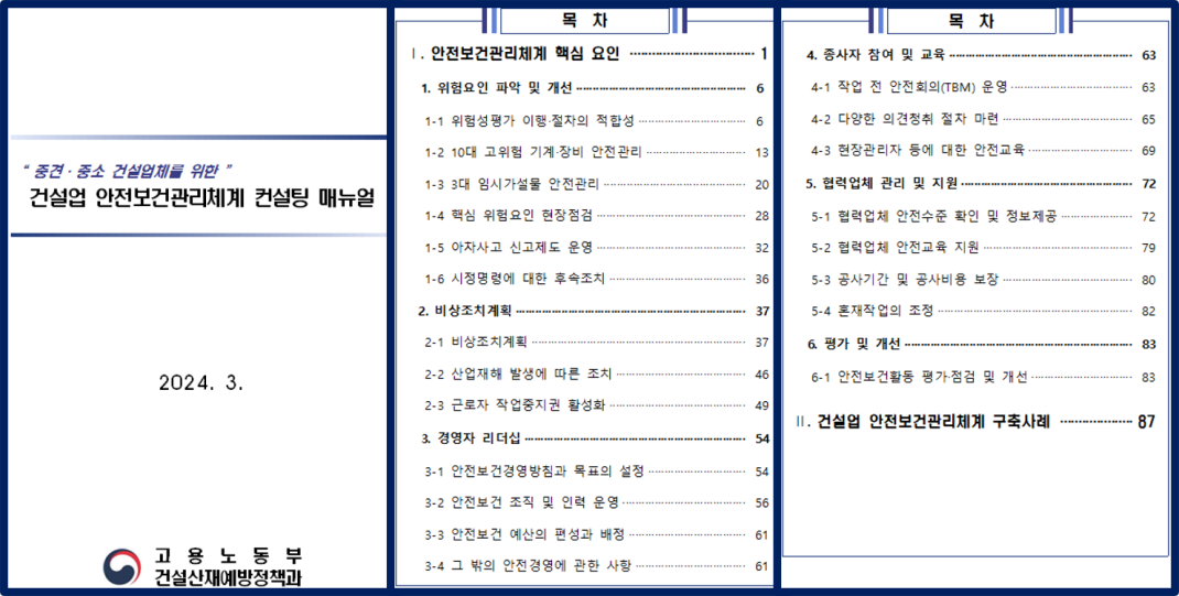 건설업 2024년 안전보건관리체계 컨설팅 매뉴얼 작성자관리자 등록일 25-11-25 조회45회 본문 건설업 2024년 안전보건관리체계 컨설팅 매뉴얼 첨부파일 건설업 2024년 안전보건관리체계 컨설팅 매뉴얼.hwp (24.6M) 노사협의회 운영 매뉴얼 및 각종 양식 위험성평가 관련 양식 목록