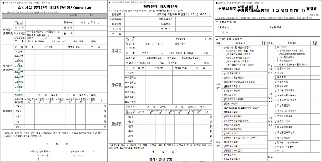 - [별지 2] 소방시설 점검인력 배치확인신청서대상물 2개 이상소방시설 자체점검사항 등에 관한 고시.hwp (57.0K)