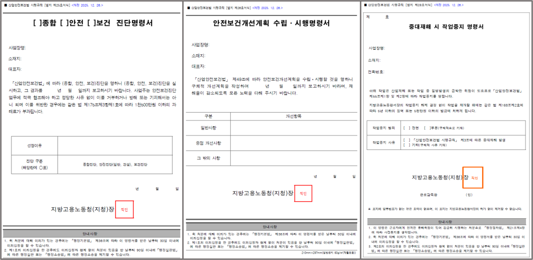 1. [별지 제25호서식] (종합, 안전, 보건) 진단명령서