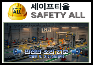 안전의 소리 21호 (기계 및 기계설비편) 작성자관리자 등록일 26-01-13 조회30회 본문 안전의 소리 21호 (기계 및 기계설비편) 입니다. 사진을 클릭해 주세요. 안전의 소리 62호 안전의 소리 61호 목록