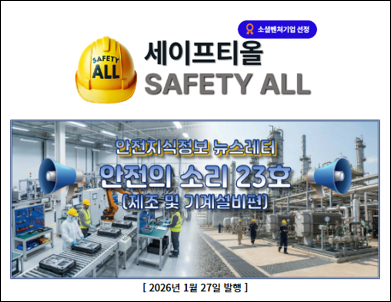 안전의 소리 23호 (제조 및 기계설비편) 작성자관리자 등록일 26-01-27 조회24회 본문 안전의 소리 23호 (제조 및 기계설비편) 입니다. 사진을 클릭해 주세요. 안전의 소리 64호 안전의 소리 63호 목록